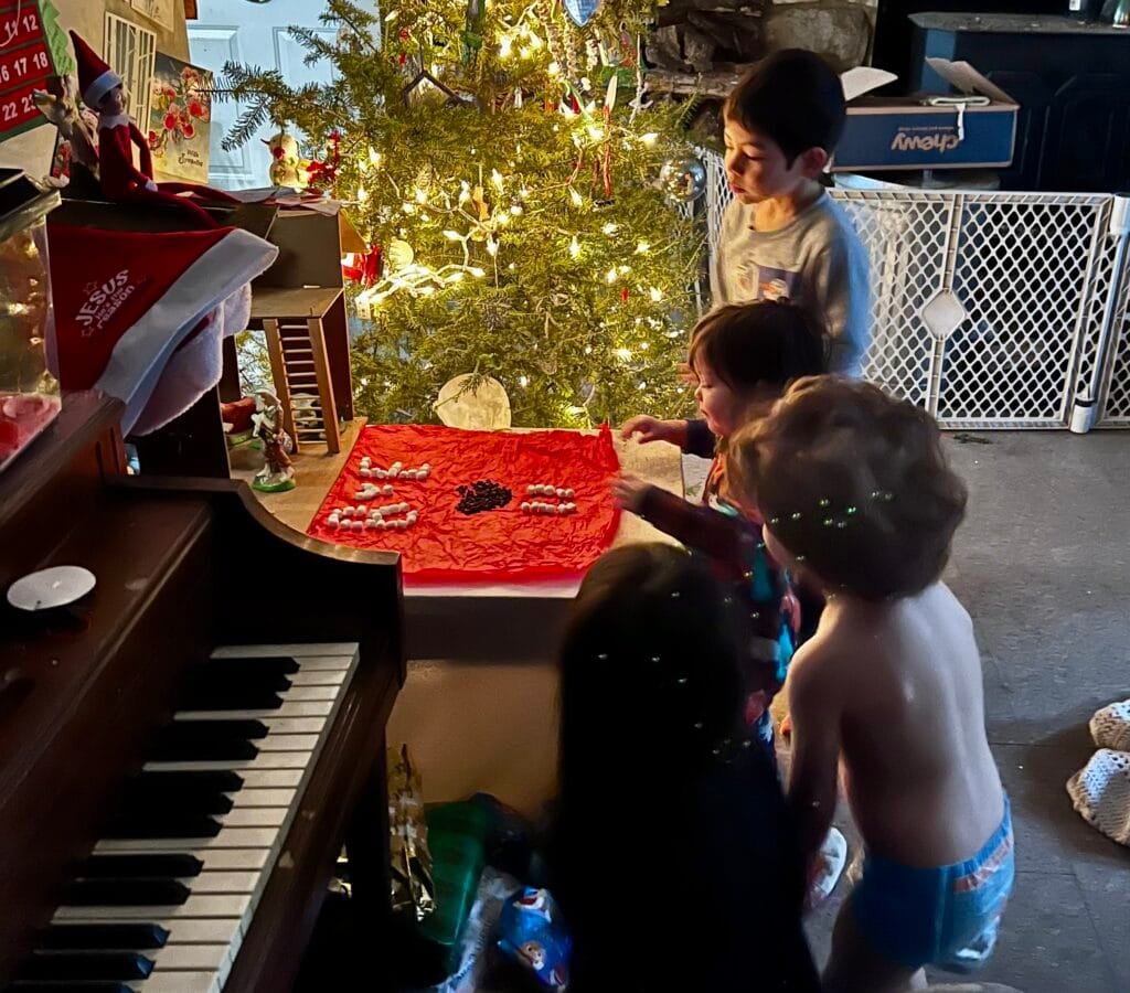 But the hardest part of boxing Christmas up is putting away the manger. The figurines were my great grandmothers, before they were my grandmothers, before they were mine. My dad made the nativity structure itself and I painted it. Every year one of our kids unwraps baby Jesus with their clumsy young child fingers on Christmas morning and somehow, he is not yet broken. I can’t see that manger without seeing the picture of all four KGRs looking at their scout elf’s message written in chocolate chips and marshmallows- “BYE, I <3 YOU!”- one final gut punch as I box it all up and anticipate enjoying it for 11 months. Jesus is the glue that holds our “past-life” to our current life and Christmas is my in-your-face reminder of that fact. Just like the two halves of that plate, we are broken and beautiful.